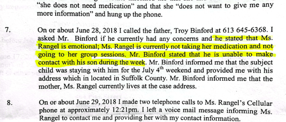 Photo above: My ex’s statement to ACS to further slander the report against me.