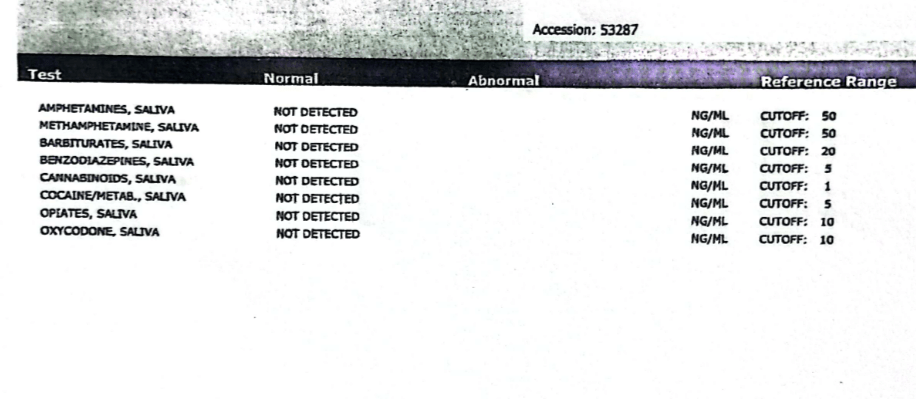 Photo above: The only drug test provided to WPA.