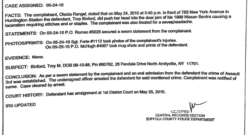 Photo above: Suffolk County Police Department Report – Third-Degree Assault (Long Island, NY).