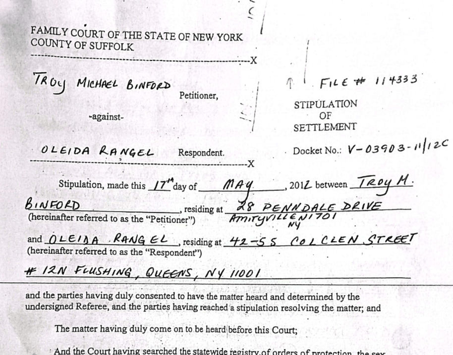 Photo above: Final Joint Custody Order granted by Suffolk County Family Court on May 17, 2012 (Docket # V-3903-11 / 12C).